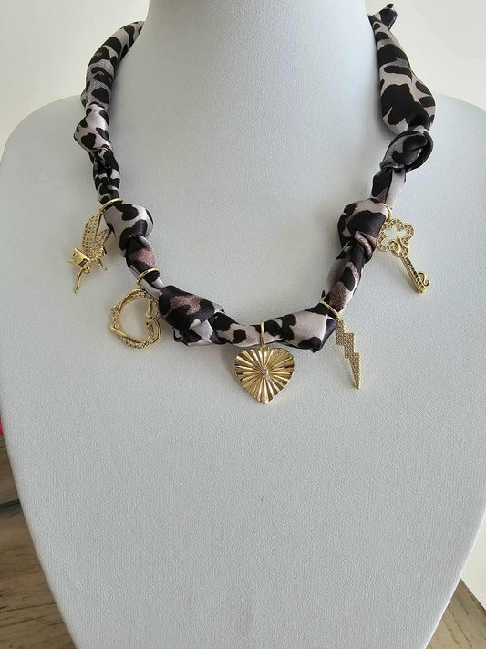 Exclusive Leopard Scarf Necklace – 18k Gold White Enamel Heart Charm