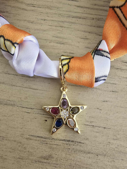 Exclusive Orange & White Scarf Necklace – 18k Gold Multi-Star Charm