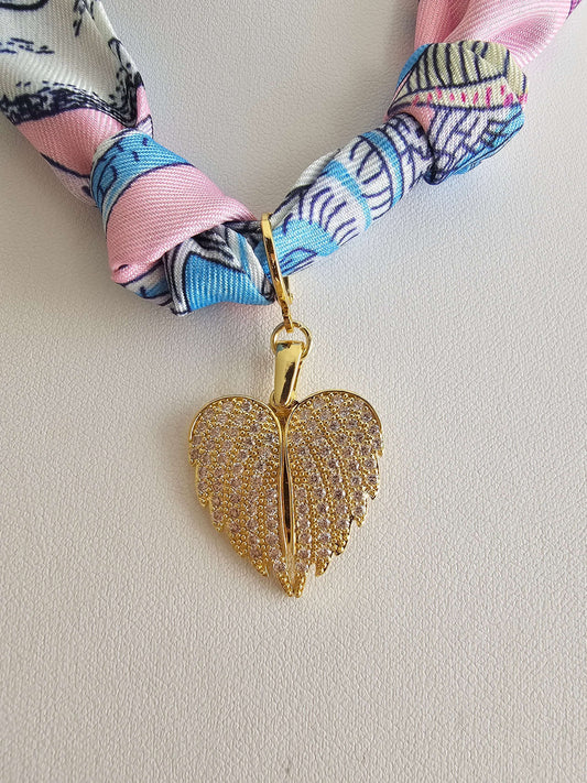 Exclusive Pink & Purple Scarf Necklace – 18k Gold Plated Angel Wings Charm