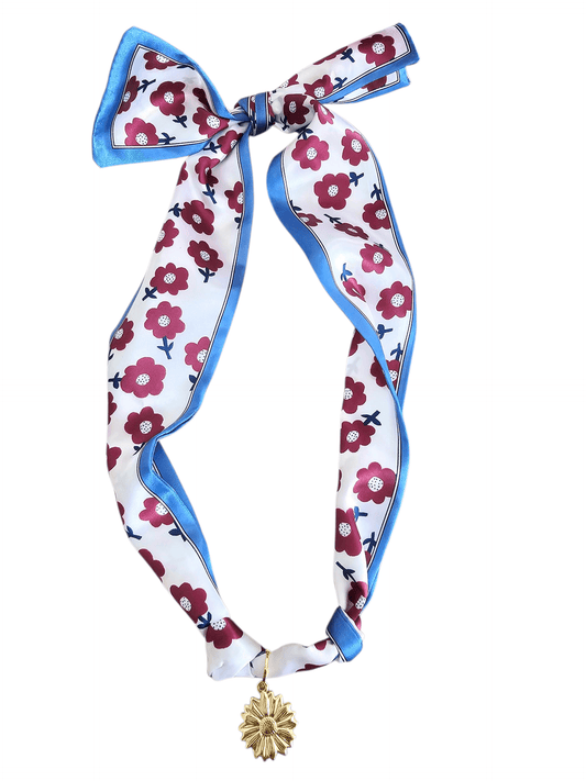 Exclusive Floral Scarf Necklace – 18k Gold Daisy Charm