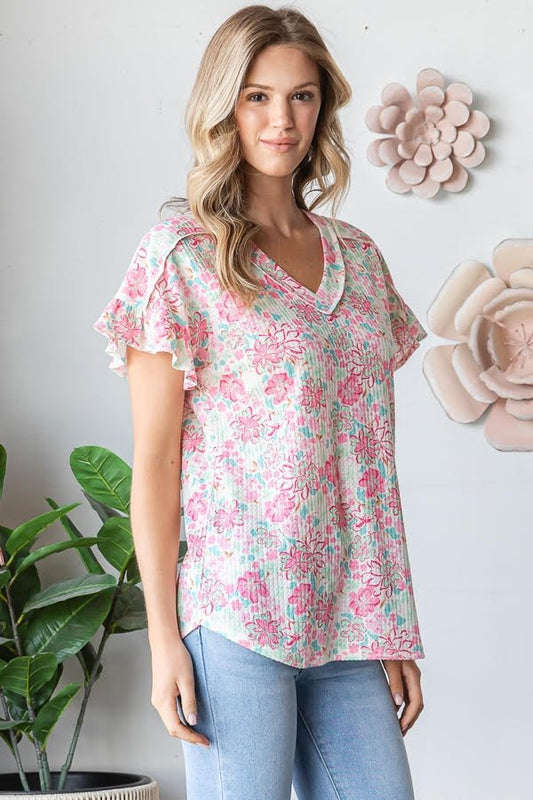 Floral Breeze Ruffle V Neck Top - Wipe Out