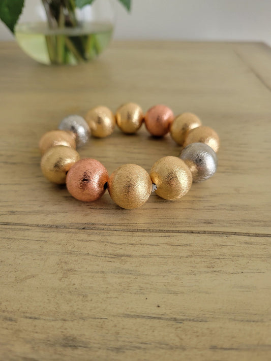 Frame Theory - Matte Gold Hammered Two Tone Beaded Bracelet