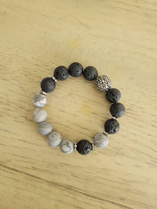 Glam Orbitals - Grey Leopard Rhinestone & Crystal Bracelet