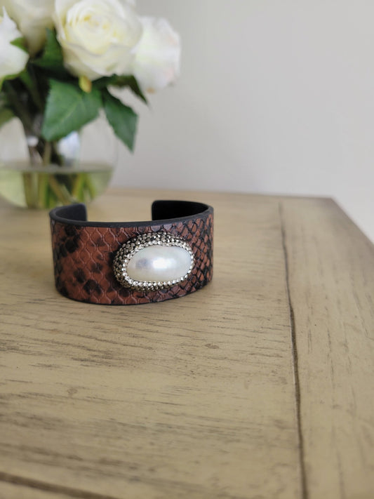 Viper Luxe - Pearl & White Rhinestone Bracelet