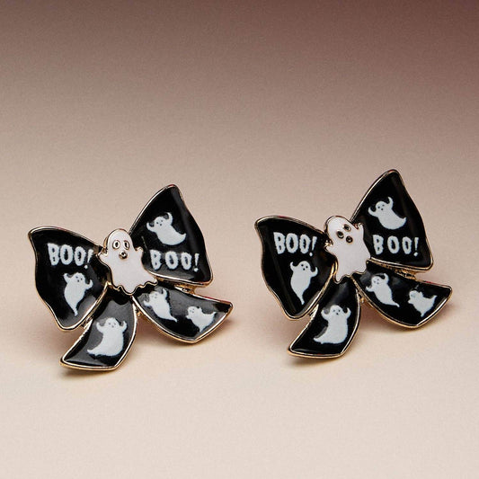 Boo-tiful Bow Stud Earrings – Black & White Enamel Ghost Posts