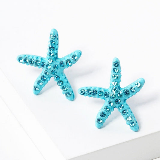 Sparkle Starlet - Crystal Pave Starfish Stud Earrings - 15 Colors