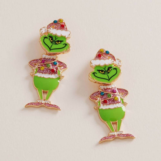 Cheeky Cheer Studs – Pink/Green Monster Holiday Earrings