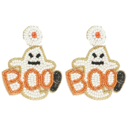 Pink Spirit Sparkle - Boo Ghost Seed Bead Halloween Earring