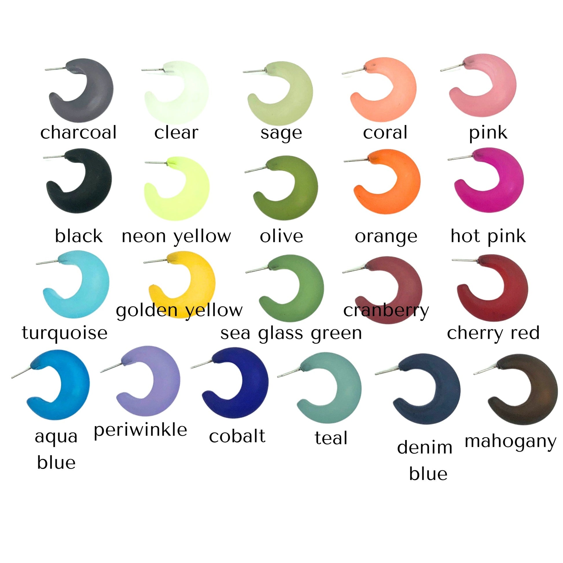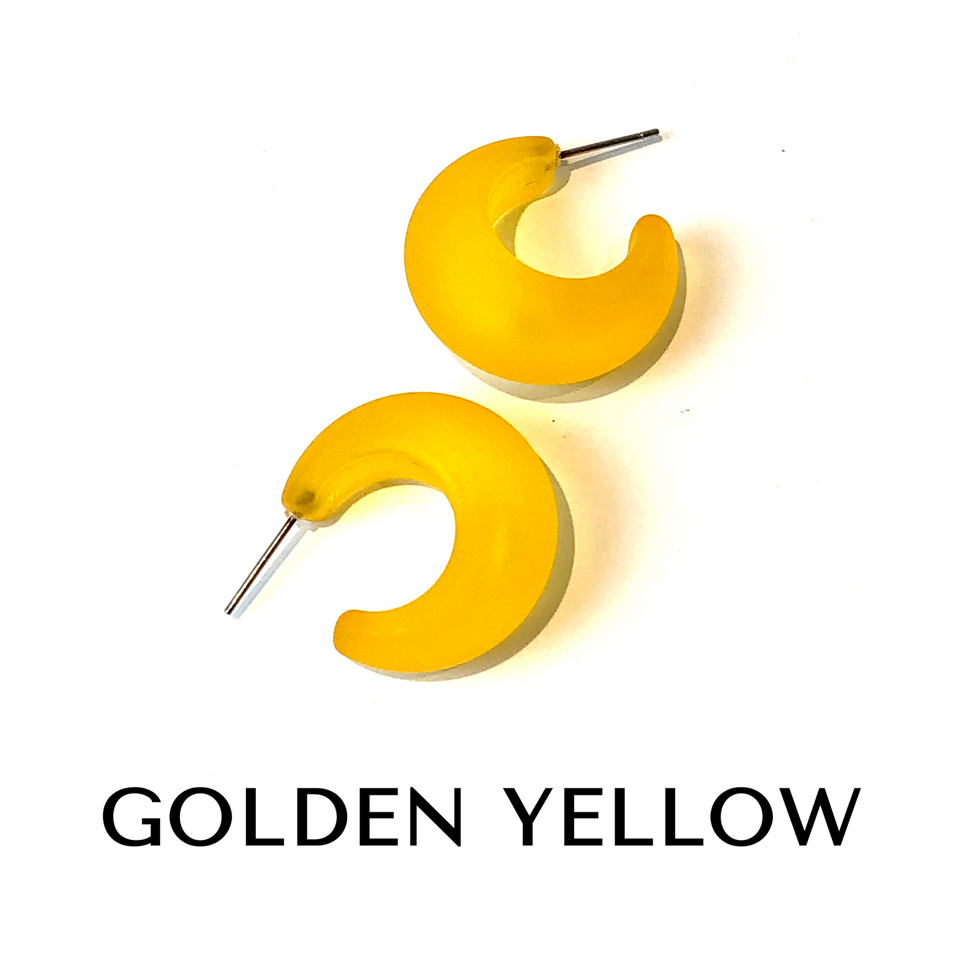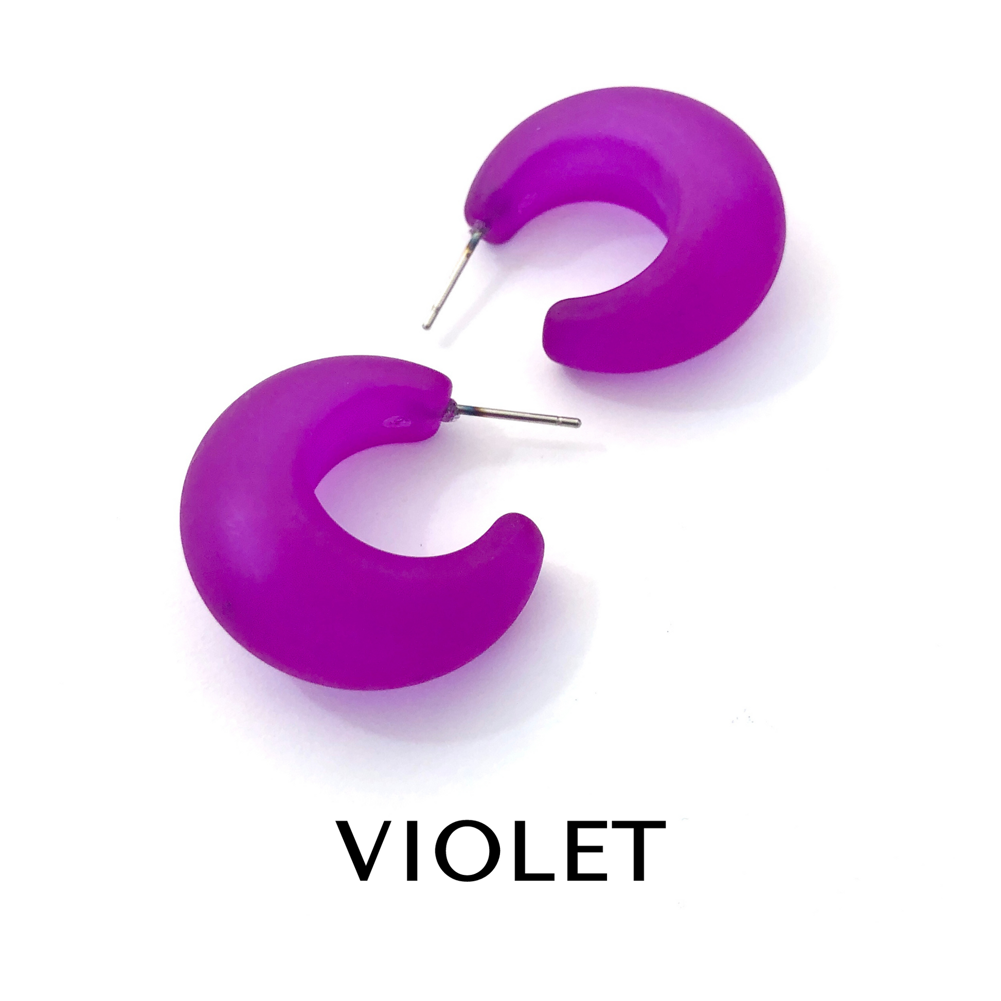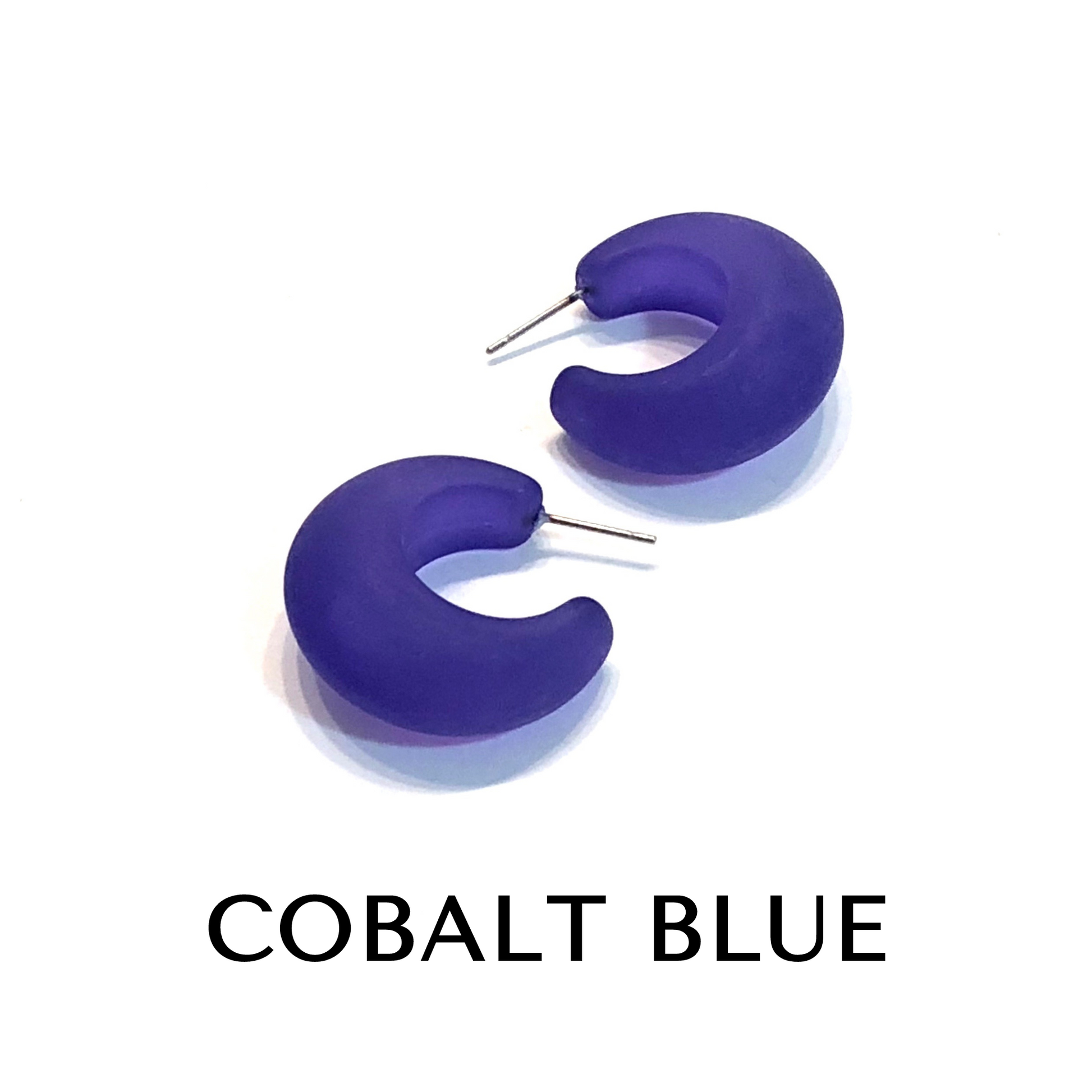 Hoop earrings with a frosted finish. This style hoop is called the Snail Shell Hoop & is made of vintage matte lucite. Each measures just about 1 inch in diameter & 13mm in width at the widest point.