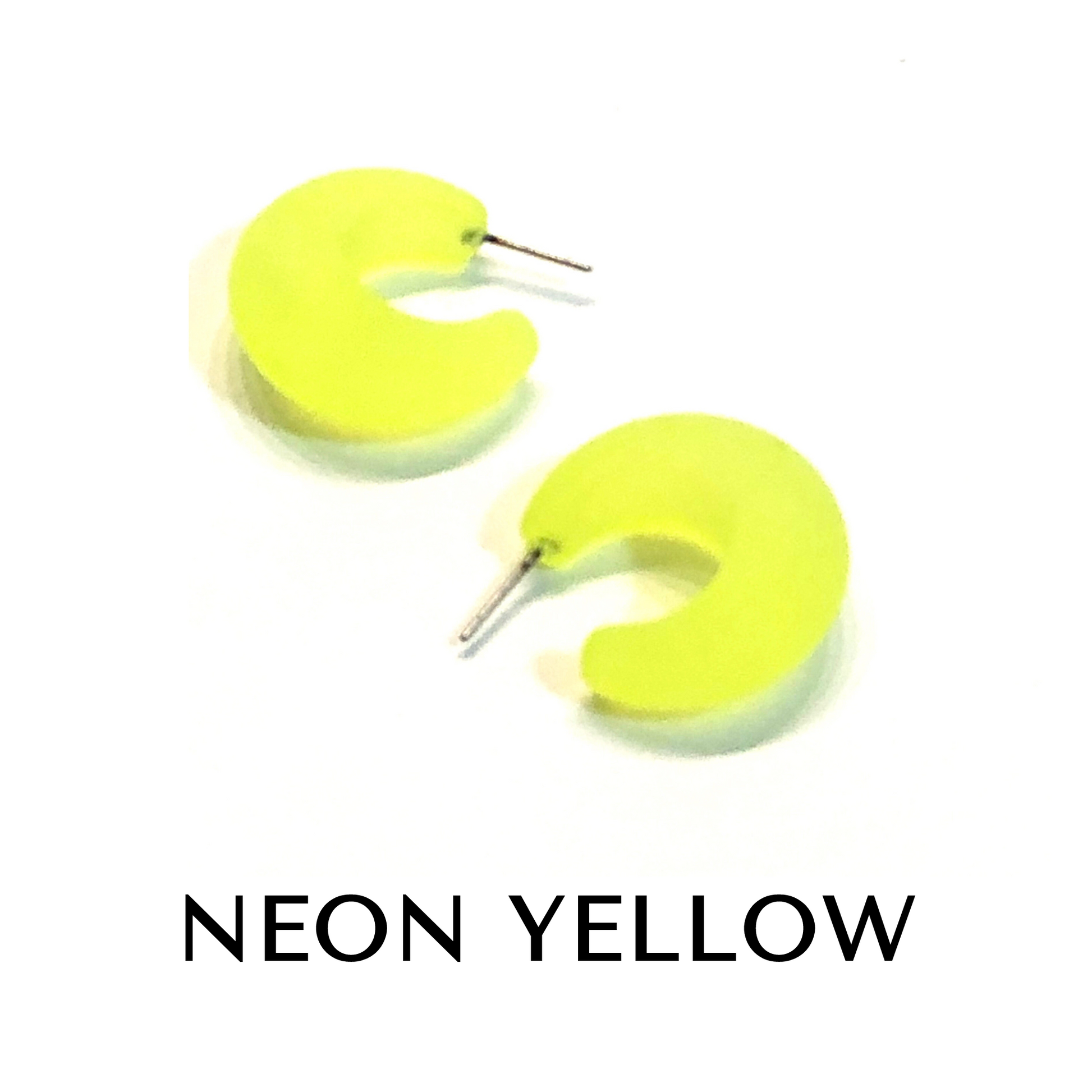 Earrings are made with new & uncirculated, vintage lucite parts that were made in the US in the 1960's - early 80's. We hand-set them with surgical steel earring posts and they have sturdy surgical steel/acrylic backings on them as well. Light-weight & fun to wear.