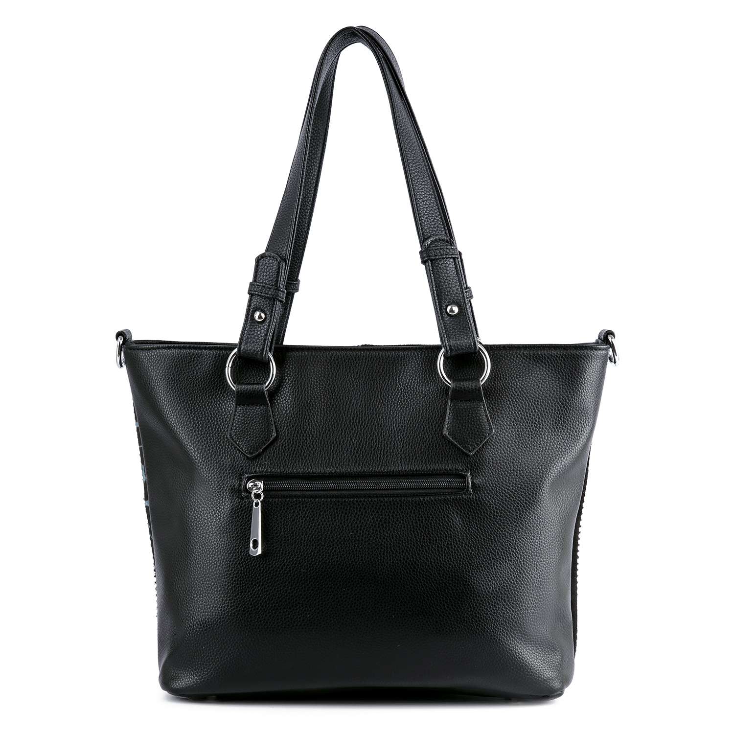 Comfort meets convenience with 10" double handles plus a 22" detachable strap, giving you the option to carry it by hand or wear it crossbody. Finished with sleek silver hardware, this tote balances modern design with everyday practicality.