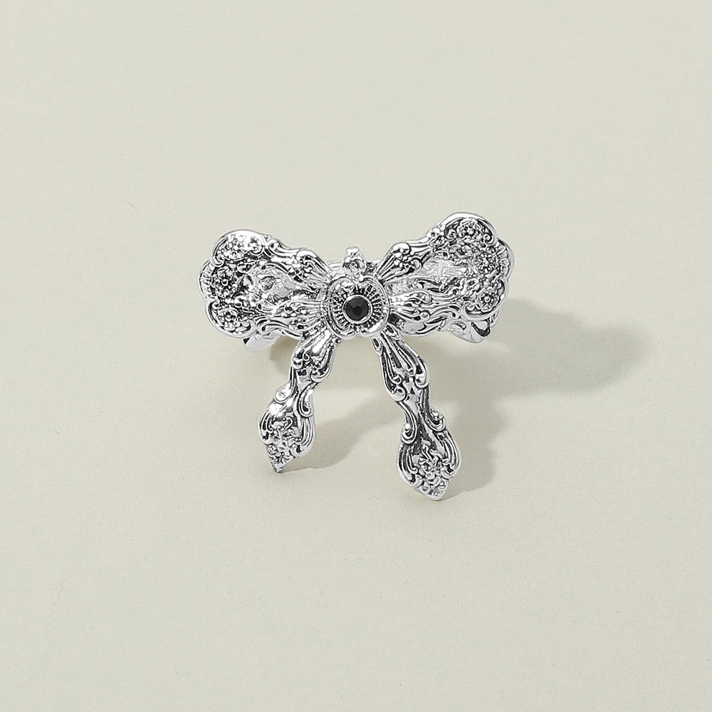 Add a touch of vintage romance to your look with this ornate bow ring. Designed with intricate detailing and a hint of sparkle at the center, it’s both playful and elegant. The stretchable, adjustable fit ensures all-day comfort while still making a bold statement. Perfect for pairing with everything from casual chic to evening glam, this ring is a versatile accent you’ll reach for again and again.