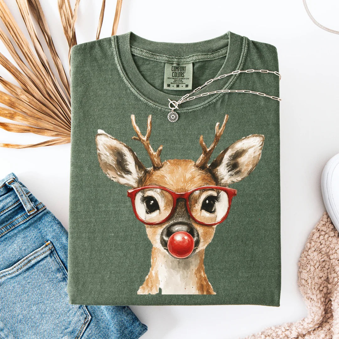Get festive and fun with the Rudy Graphic Tee! Featuring a playful Rudolph design, this tee adds a cheerful twist to your holiday wardrobe. Perfect for cozy gatherings or gift-giving, it brings holiday spirit with every wear.