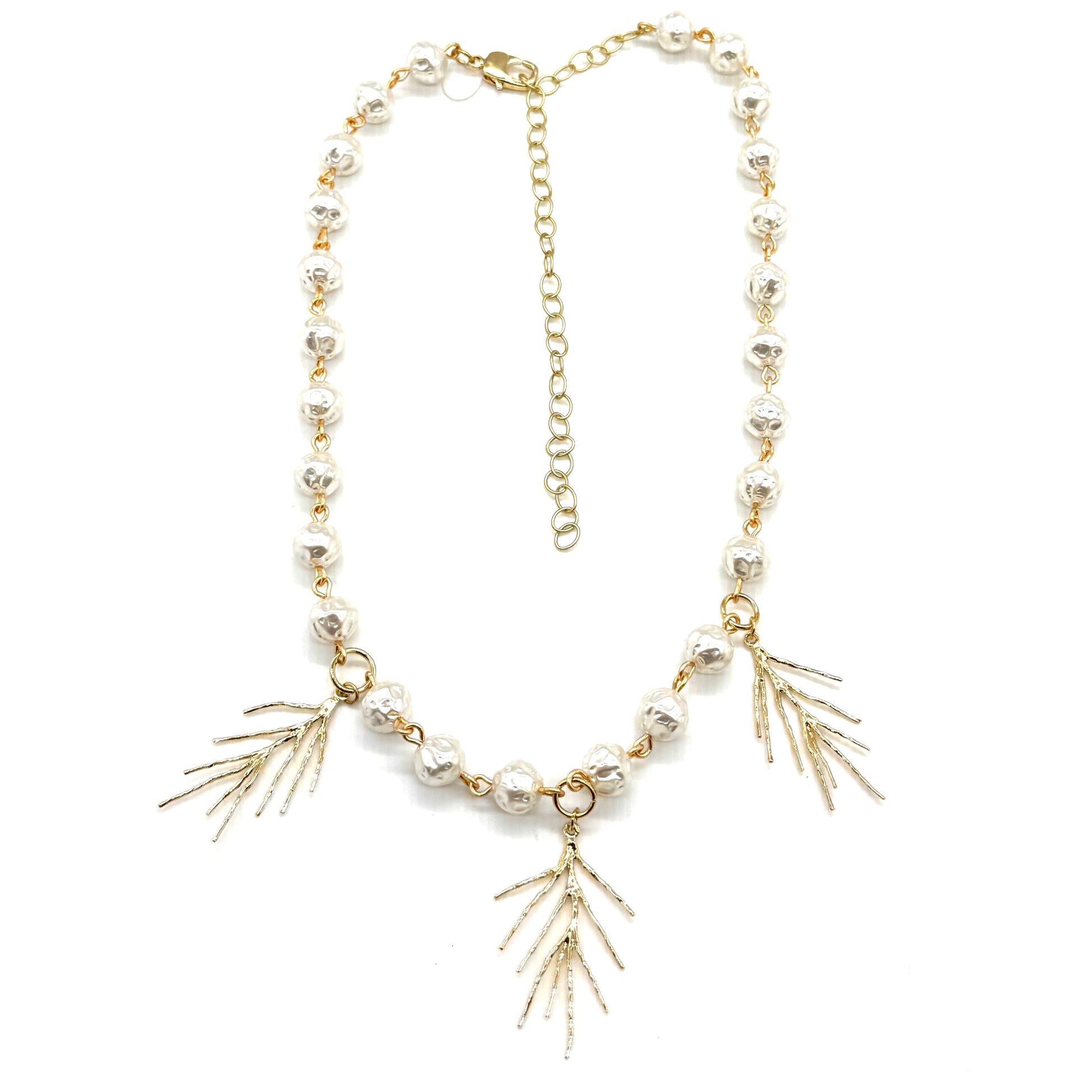 Inspired by quiet winter woods, the Winter Pine Pearl Necklace combines organic texture with delicate golden detail. Each bead is made from vintage Japanese resin pearlsfrom the 1950s — the same rare pearls featured in our Wabi Collection — and finished with graceful pine-branch charmsthat catch the light like frost on evergreens.